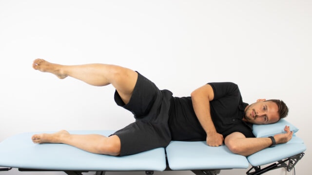 قبل إجراء الفحص، تأكد من فحص واستبعاد الأمراض الأكثر انتشاراً في العمود الفقري القطني ومفصل الفقرات القطنية التي يمكن أن تفسر أعراض المريض. لإجراء الاختبار، اطلب من المريض الاستلقاء على الجانب غير المصاب مع ثني الوركين والركبتين. ثم اطلب من المريض أن يقوم بخطف فخذه بحيث يرتفع عن الطاولة.