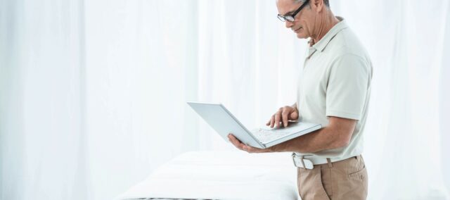 Fyzioterapeut s notebookem