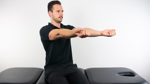 Για να εκτελέσετε αυτή τη δοκιμασία, ο ασθενής σας πρέπει να κάθεται με εκτεθειμένα και υποβασταζόμενα χέρια. Στη συνέχεια, ζητήστε του να λυγίσει τους ώμους του στις 90° και, στη συνέχεια, να τεντώσει και να κλειδώσει πλήρως και τους δύο αγκώνες. Οι τραυματισμένες και οι μη τραυματισμένες πλευρές συγκρίνονται οπτικά και εκείνες με ίση έκταση καταγράφονται ως πλήρης έκταση.