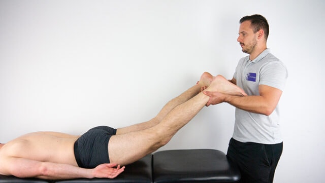 Στη συνέχεια και τα δύο πόδια ανυψώνονται παθητικά περίπου 30 cm από τον πάγκο και στη συνέχεια τραβιούνται απαλά.