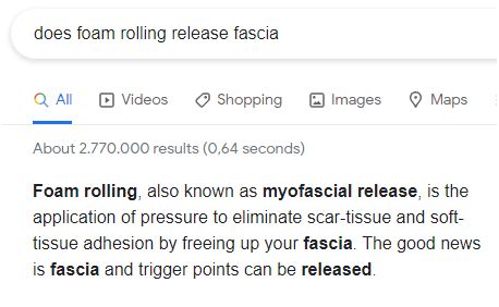 Commençons donc par ce que fait réellement le foam rolling. En cherchant sur Google "foam rolling", on tombe sur la définition suivante : Le foam rolling consiste à appliquer une pression pour éliminer les cicatrices et les adhérences des tissus mous en libérant les fascias. La bonne nouvelle est que le fascia et les points de déclenchement peuvent être libérés.