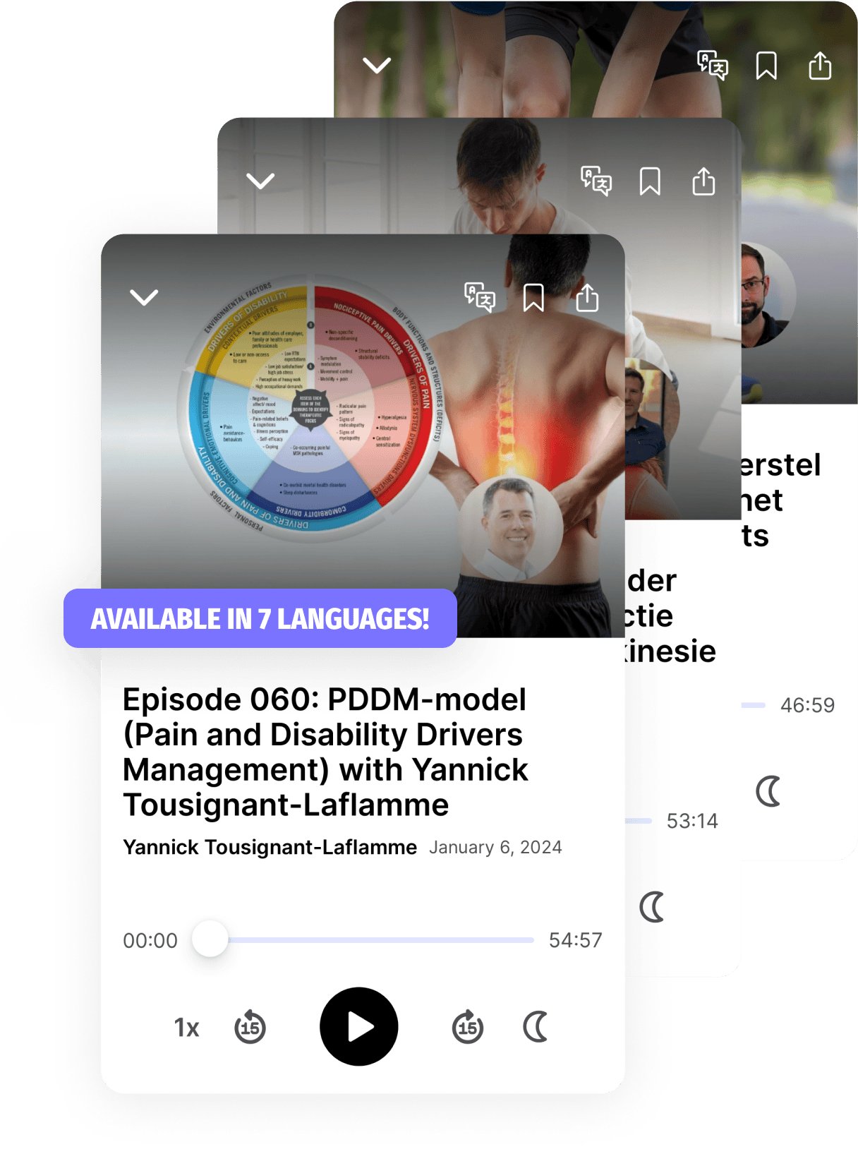 Learn on the go when you don’t have time for long courses. Each episode comes with transcripts, infographics and multi-language support, making deep insights easier to fit into your day.