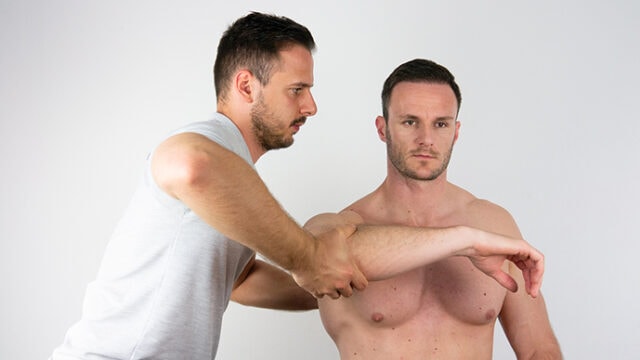 A serratus anterior vizsgálatához álljon a páciens, és hajlítsa be a karját 90°-ban. Ezután a vizsgáló hátrafelé irányuló erőt fejt ki a karra. A gyengült serratus anterior esetén a lapocka szárnyasodását tapasztalhatja.