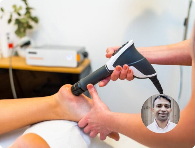 Benoy berbagi wawasan klinisnya dari praktiknya di London, yang mengilustrasikan keefektifan terapi gelombang kejut baik di NHS maupun di lingkungan swasta. Dia menggarisbawahi perlunya pemilihan pasien yang cermat, menganjurkan penggunaannya terutama sebagai tambahan untuk strategi rehabilitasi lainnya daripada solusi yang berdiri sendiri. Sesi ini juga menyoroti mekanisme fisiologis terapi gelombang kejut, termasuk peningkatan sintesis kolagen dan modulasi nyeri, yang memfasilitasi penyembuhan dan pemulihan tendon.