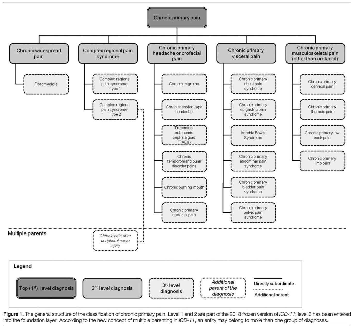 Dengan fokus khusus pada fibromyalgia, para penulis mengkategorikan dan menyajikan temuan yang berkaitan dengan: