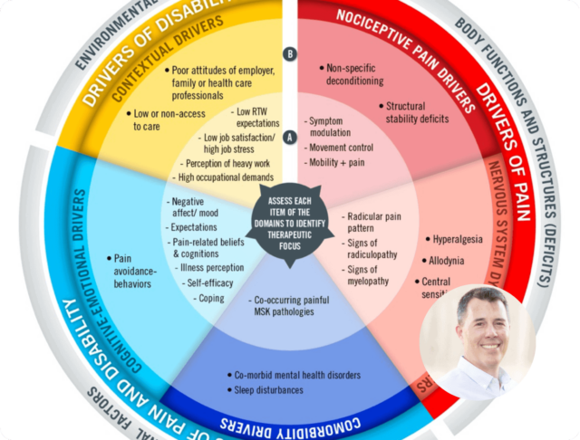 Nesta masterclass, Yannick Toussignant-Laflamme, fisioterapeuta e professor na Universidade de Sherbrooke, apresenta o modelo Pain and Disability Driver Management (PDDM). Este modelo foi desenvolvido para melhorar a gestão da dor lombar, colmatando a lacuna entre as práticas baseadas em provas e os tratamentos clínicos actuais. Toussignant-Laflamme salienta a complexidade da gestão da dor lombar e enfatiza a necessidade de uma abordagem mais estruturada que vá para além dos simples rótulos de diagnóstico. O modelo PDDM baseia-se no quadro da Classificação Internacional de Funcionalidade, Incapacidade e Saúde (CIF) e identifica cinco domínios que influenciam a dor e a incapacidade: factores de dor nociceptiva, factores de disfunção do sistema nervoso, factores de comorbilidade, factores cognitivo-emocionais e factores contextuais. Cada domínio é ainda dividido em elementos modificáveis e menos modificáveis, com o objetivo de fornecer um diagnóstico abrangente e um plano de tratamento orientado.