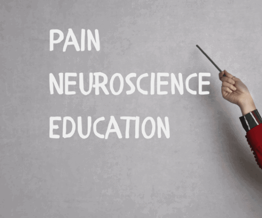Uma intervenção frequentemente utilizada é a educação em neurociência da dor (PNE). Explica os complexos processos biológicos aos doentes através de metáforas, exemplos e imagens fáceis de compreender. Os objectivos são alterar as crenças sobre a dor e reduzir as ameaças, tornando os doentes mais confiantes durante o exercício. Isto, por sua vez, diminuiria a evitação do medo e a catastrofização da dor, reduzindo a dor e a incapacidade.