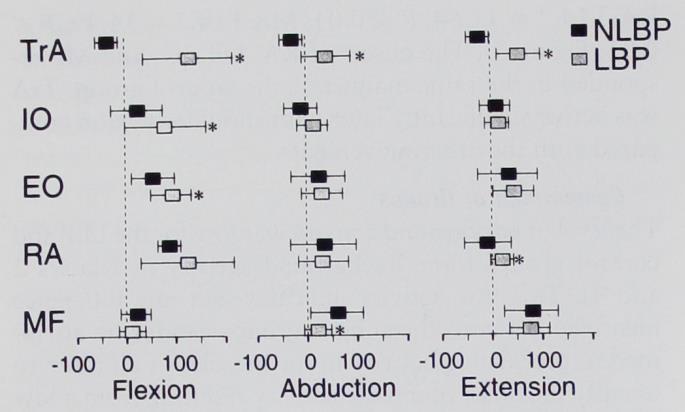 În urmă cu aproape 25 de ani, Hodges și colab. au efectuat un studiu în care au constatat un debut întârziat al contracției abdomenului transversal de 50 de milisecunde atunci când pacienții cu dureri cronice lombare au ridicat brațul contralateral în comparație cu un grup sănătos.