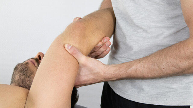 Pentru a efectua testul, pacientul trebuie să se afle în poziția culcat pe spate, cu brațele deasupra capului, iar examinatorul trebuie să stea la capul mesei. Mâna și încheietura pacientului sunt fixate între brațul și corpul examinatorului, lăsând antebrațul în rotație neutră. Pentru cotul stâng, fixați humerusul pe partea sa cea mai distală cu mâna stângă, cu degetul mare pe suprafața posterioară deasupra tendonului tricepsului. Prindeți antebrațul cu mâna dreaptă, cu degetele arătător și mijlociu de-a lungul aspectului anterior al radiusului proximal și cu degetul mare pe marginea subcutanată a ulnei.