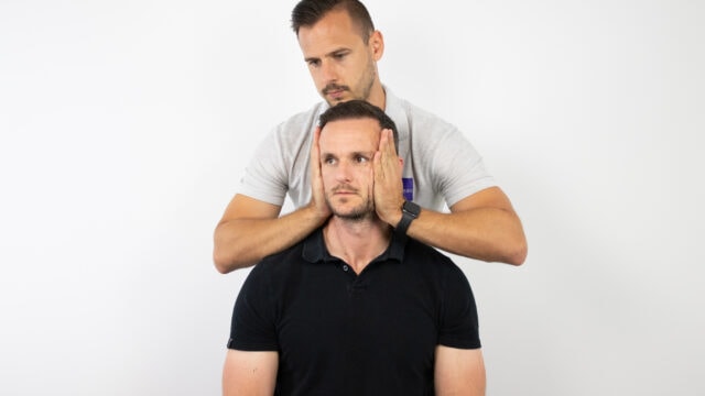 Pri sternocleidomastoidnem sklecu prosite bolnika, naj ob vašem uporu vrti glavo v obe smeri.